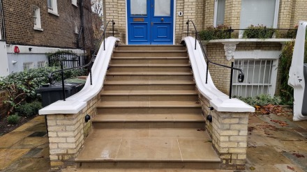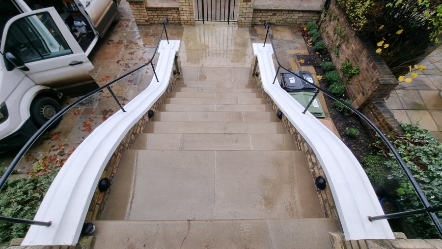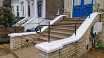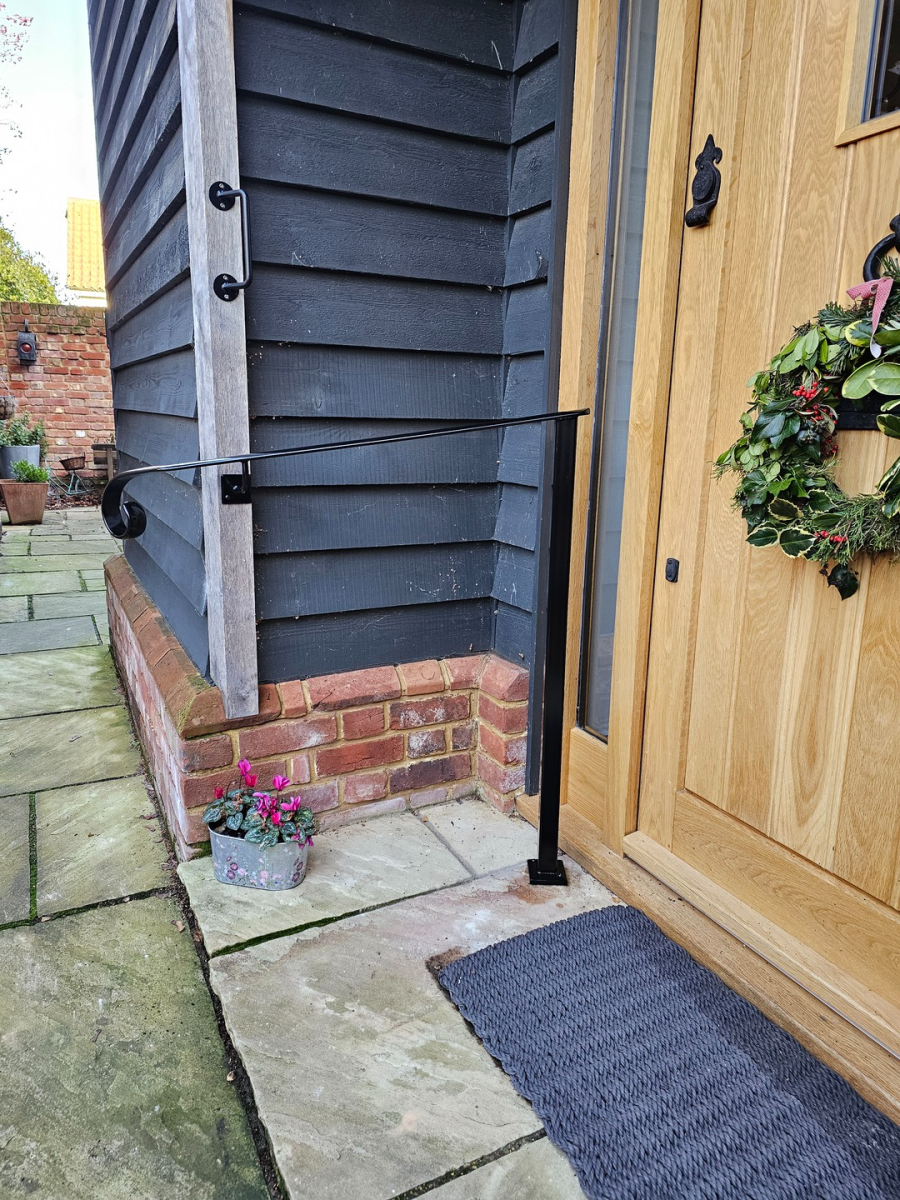 Three simple little scroll end handrails fitted in this customers garden, they provide an extra bit of stability when navigating the steps.