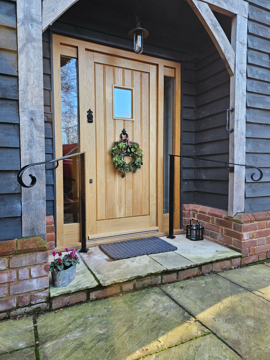 This pair of scroll end handrails are the finishing touches to this beautiful front door.