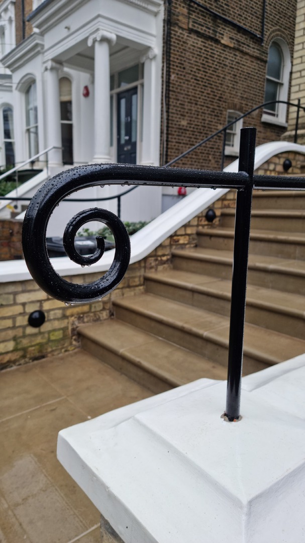 We had a very long & wet day fitting this pair of scroll end handrails in London, but thankfully they fitted a treat!!