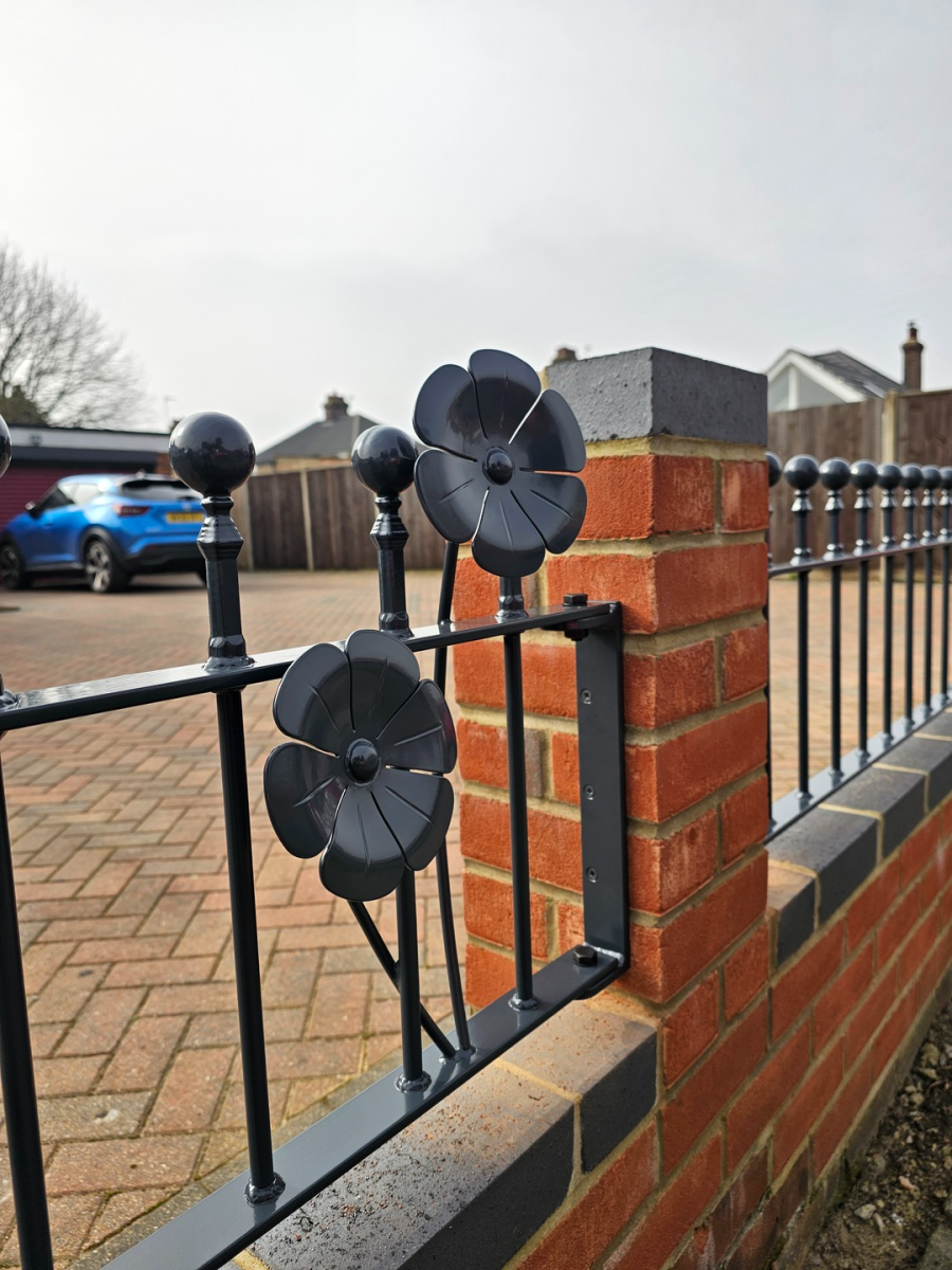 Here's a stretch of ball top wall rails, powder coated in Anthracite Grey. There is a couple of flowers dotted along the front just to add a little something