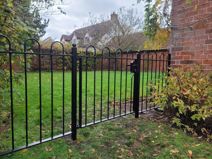 A gothic style single gate with euro lock cylinder.